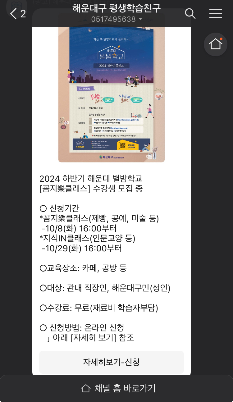 알찬 평생교육 강좌 정보와 소식 보내드리겠습니다! -해운대구청 교육도서관과 평생교육팀-